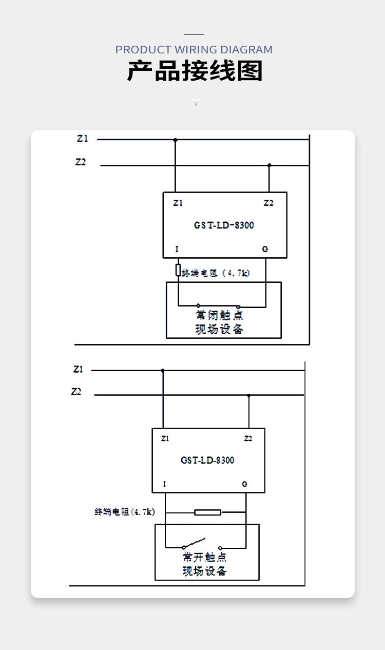 Z1、Z2:接火災報警控制器信號二總線,無極性
